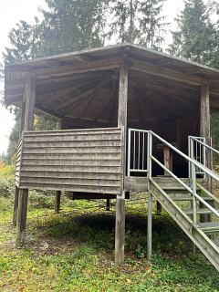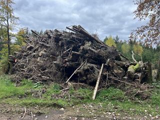 Als je deze grote stapel hout aan je linker kant ziet moet je rechts een (houthakkers) pad in. De kampeerplek is ca. 100 meter links. Ik stuur zo nog een gps punt