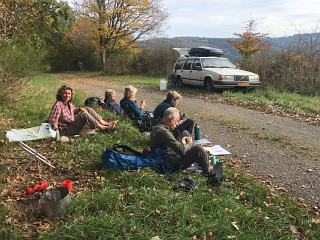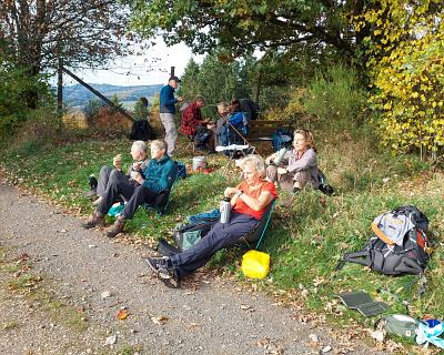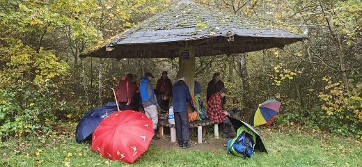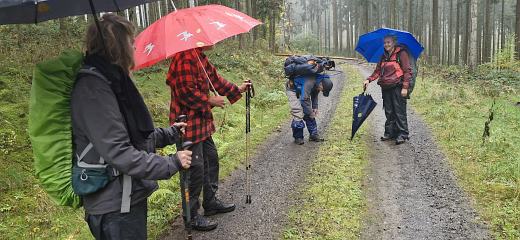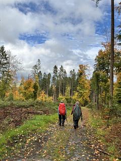 Het weer blijkt mee te vallen en jullie lopen door een mooi wandelgebied.13:40 - Irene
