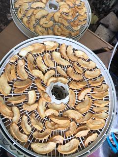 Op vijf na alle appels geschild en klaar voor de droogmachine voor volgend jaar om met de 50e TT deze alsnog te kunnen eten..